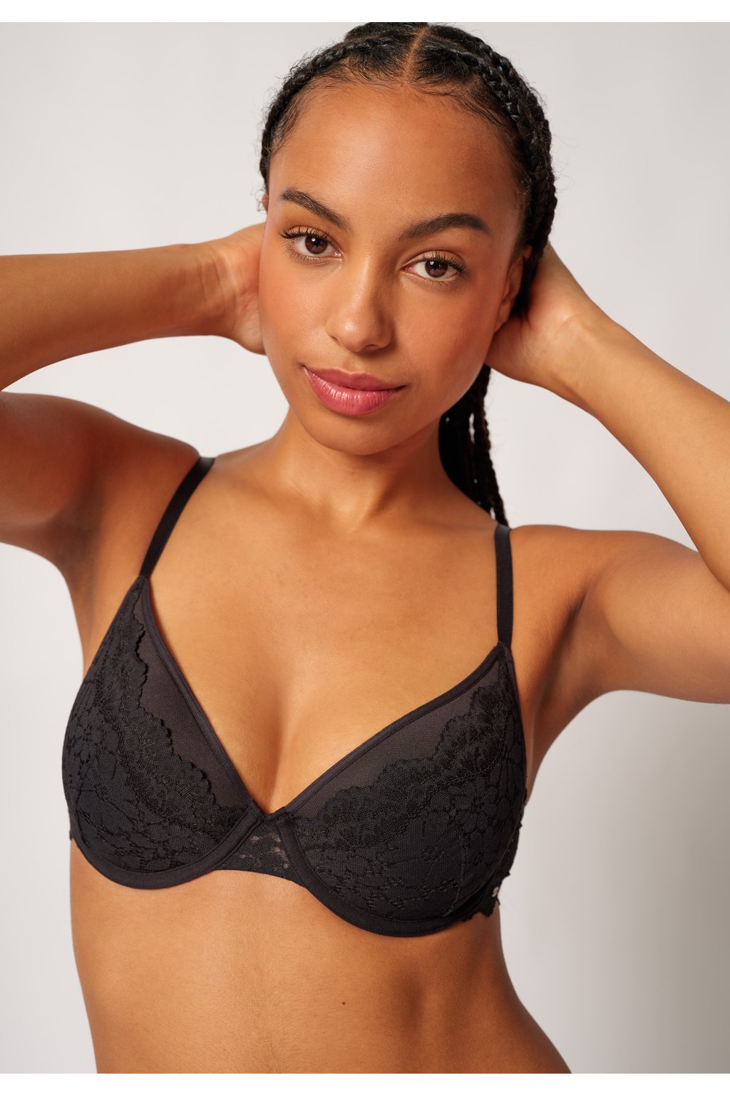 Košíčková podprsenka z inovatívneho 3D dištančného materiálu|Boky a košíčky čiastočne pokryté čipkou|Pohodlne lemované okraje|Okraj čipky na podprsiach a v strede|Nastaviteľné ramienka a zapínanie na nastaviteľný háčik