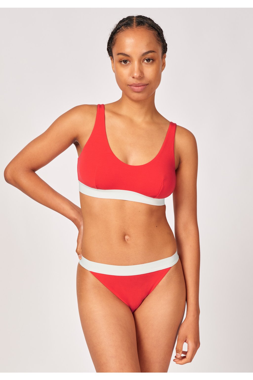 Podprsenka s odnímateľnými vypchávkami a výstrihom do V|Úzka elastická guma pri krku a otvore na ramená|Obojstranne vyrobené z mäkkého TENCEL Modal|Použitá guma pod prsiami pre bezpečné uchytenie|Zodpovedne vyrobené vlákno TENCEL Modal