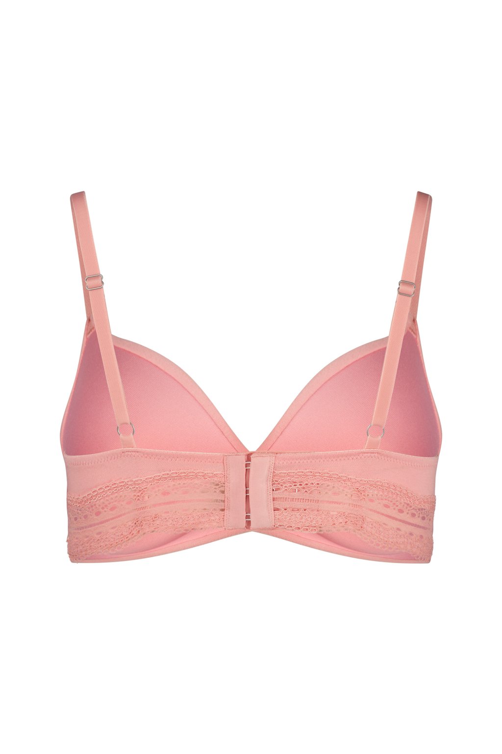 Trojuholníková podprsenka bez kostíc s vypchávkami | Košíčky potiahnuté strečovou bavlnou | Jemná čipka na zadnom páse pod prsiami | Individuálne nastaviteľné ramienka | Zapínanie na háčik vzadu