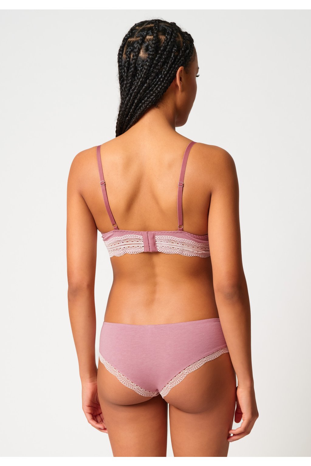 Táto vystužená trojuholníková podprsenka je všestranná v každom ohľade. Je vyrobená z bavlny so strečovým obsahom. Vďaka tomu je mimoriadne pohodlný a individuálne prispôsobiteľný. Vizuálne je rafinovane jednoduchý, nadčasový a preto mimoriadne všestranný. Jemným zvýraznením je čipka vzadu.